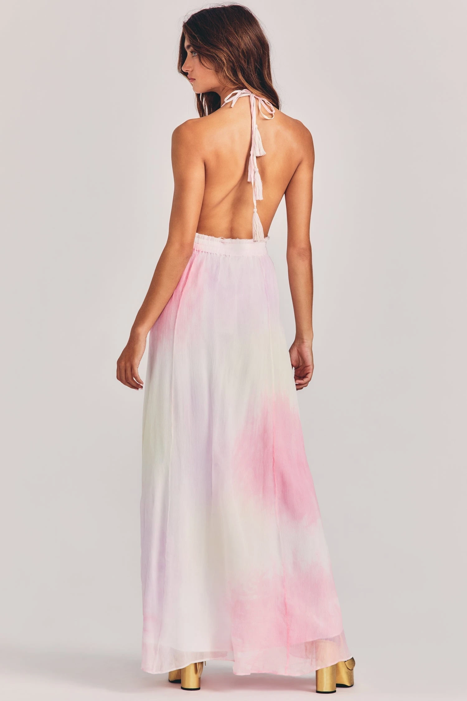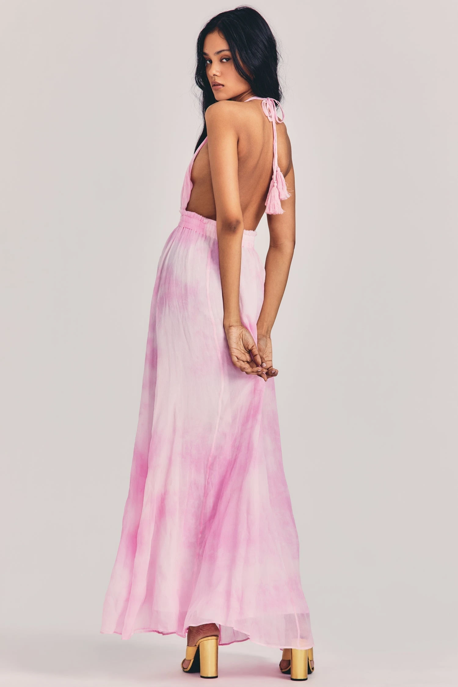 All you need is our Livia Dress, back by popular demand in 100% hand-dyed cotton. This adorable maxi halter dress features a double-stranded tie, a plunging neckline, an elastic-encased waistband and a full sweep.